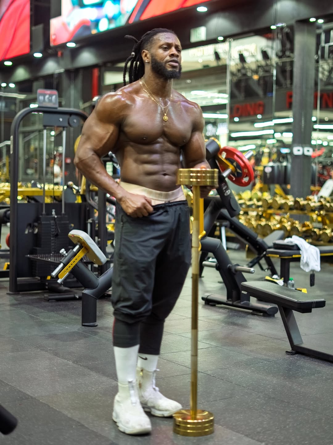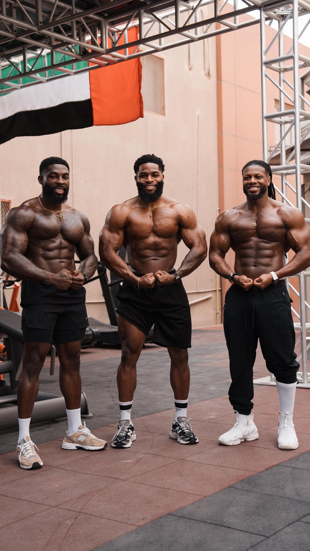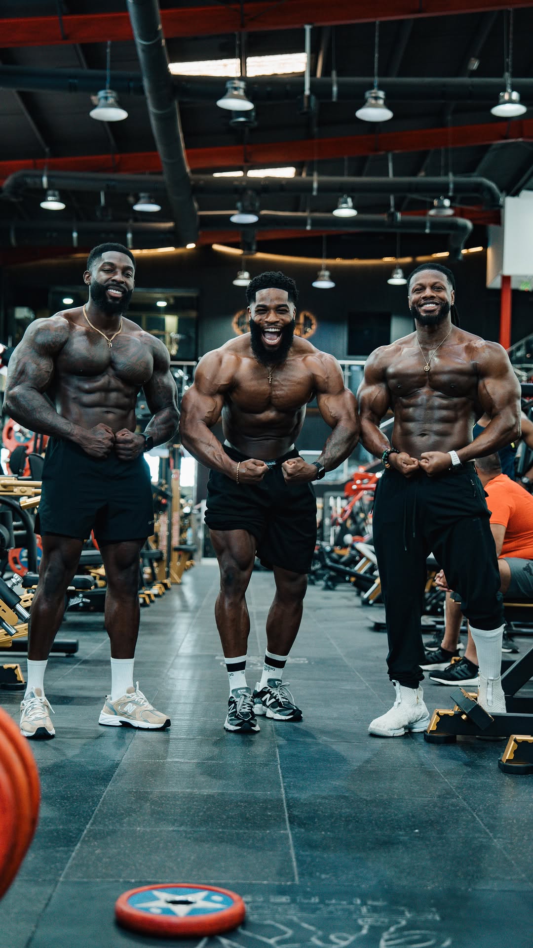 Big push session with the boys 💪 Iron sharpens iron. Full video on YouTube! Go check it out! Locked in at Binous Gym Dubai with @dwaynelati & @prosperfitness__ Heavy presses, clean reps, and nonsto