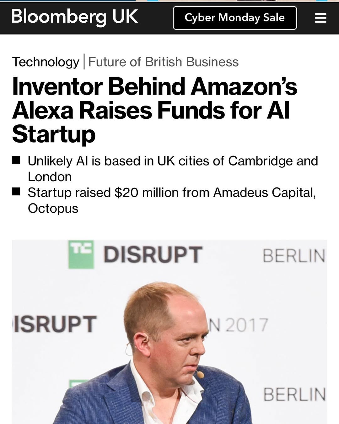 A summary of William Tunstall-Pedoe's profile focusing on his foundational role in Amazon Alexa and his current work as CEO of UnlikelyAI.